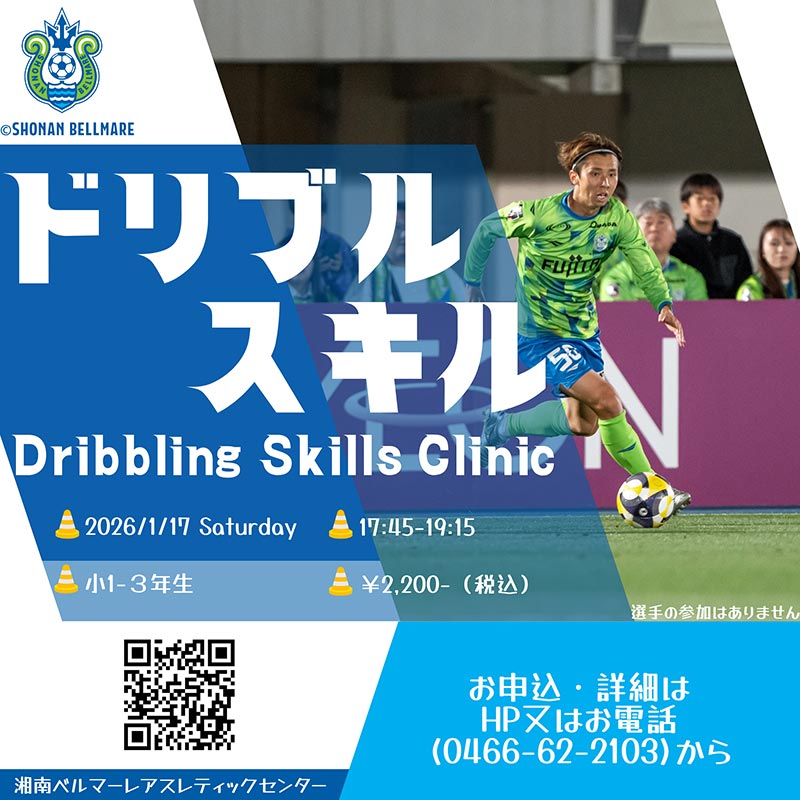 1月17日(土)に湘南ベルマーレアスレティックセンターフットサルコートで、小学1~3年生対象「ドリブルスキルクリニック」を開催いたします。