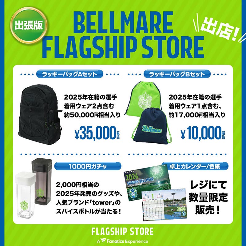 当日は会場限定で選手着用アイテムが必ず入っている「ラッキーバッグ」を販売するほか、必ず税込2,000円以上のグッズが当たる「1,000円ガチャ」などを販売いたします。