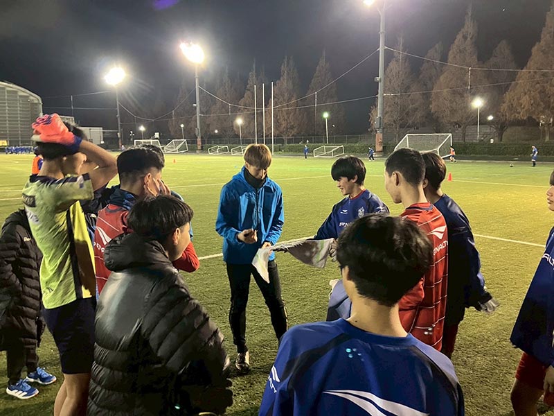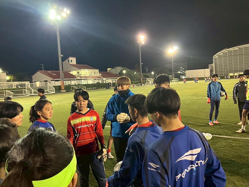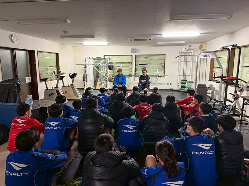 真田選手からは、日頃から意識しているポイントについて積極的なアドバイスが送られ、アカデミー選手たちがメモを取りながら真剣に話を聞く姿が見られました。