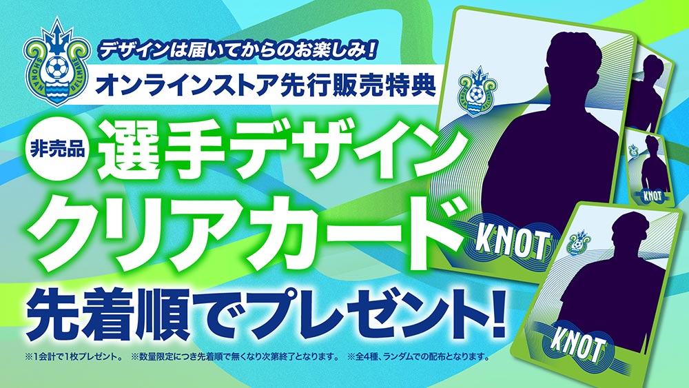 先行販売で「明治安田J2・J3百年構想リーグ オーセンティックユニフォーム」をご購入いただいたお客さまに、1会計につき1枚「選手デザインクリアカード(非売品)」を先着でプレゼントいたします。