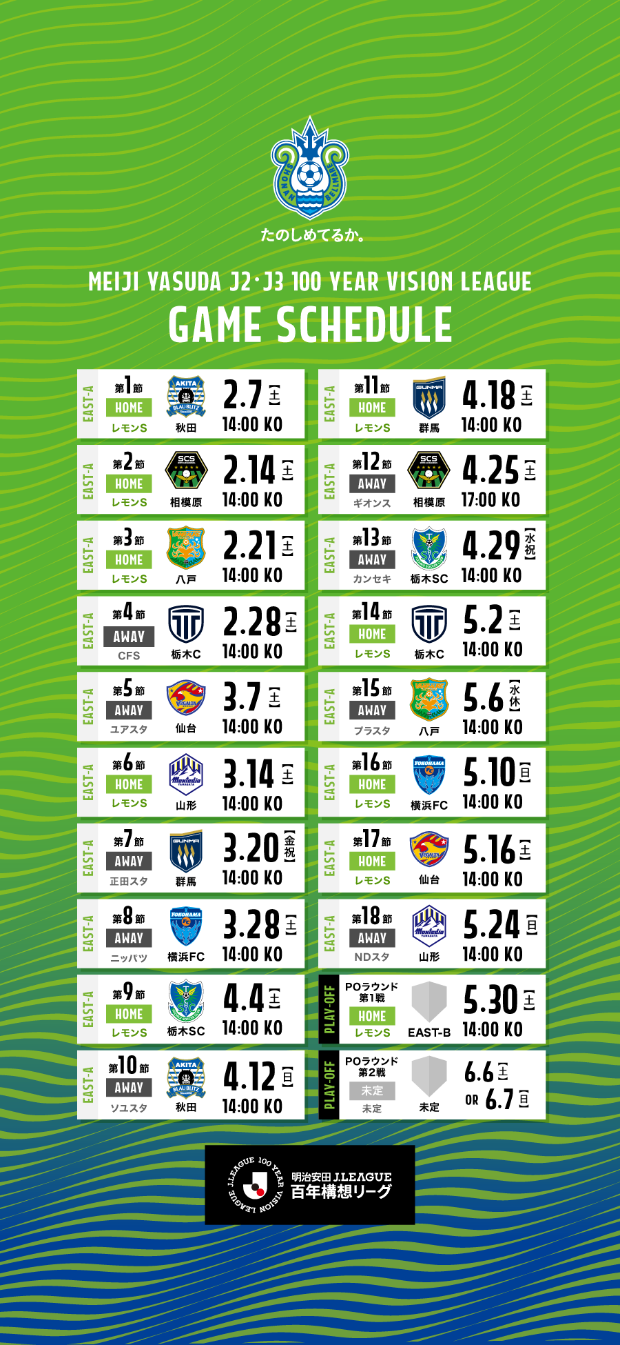 【明治安田J2・J3百年構想リーグ】地域リーグラウンド 試合日程 詳細決定のお知らせ