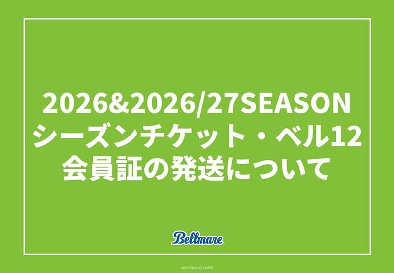 この度は2026&2026/27シーズンチケット・ベル12会員にご入会いただき誠にありがとうございます。