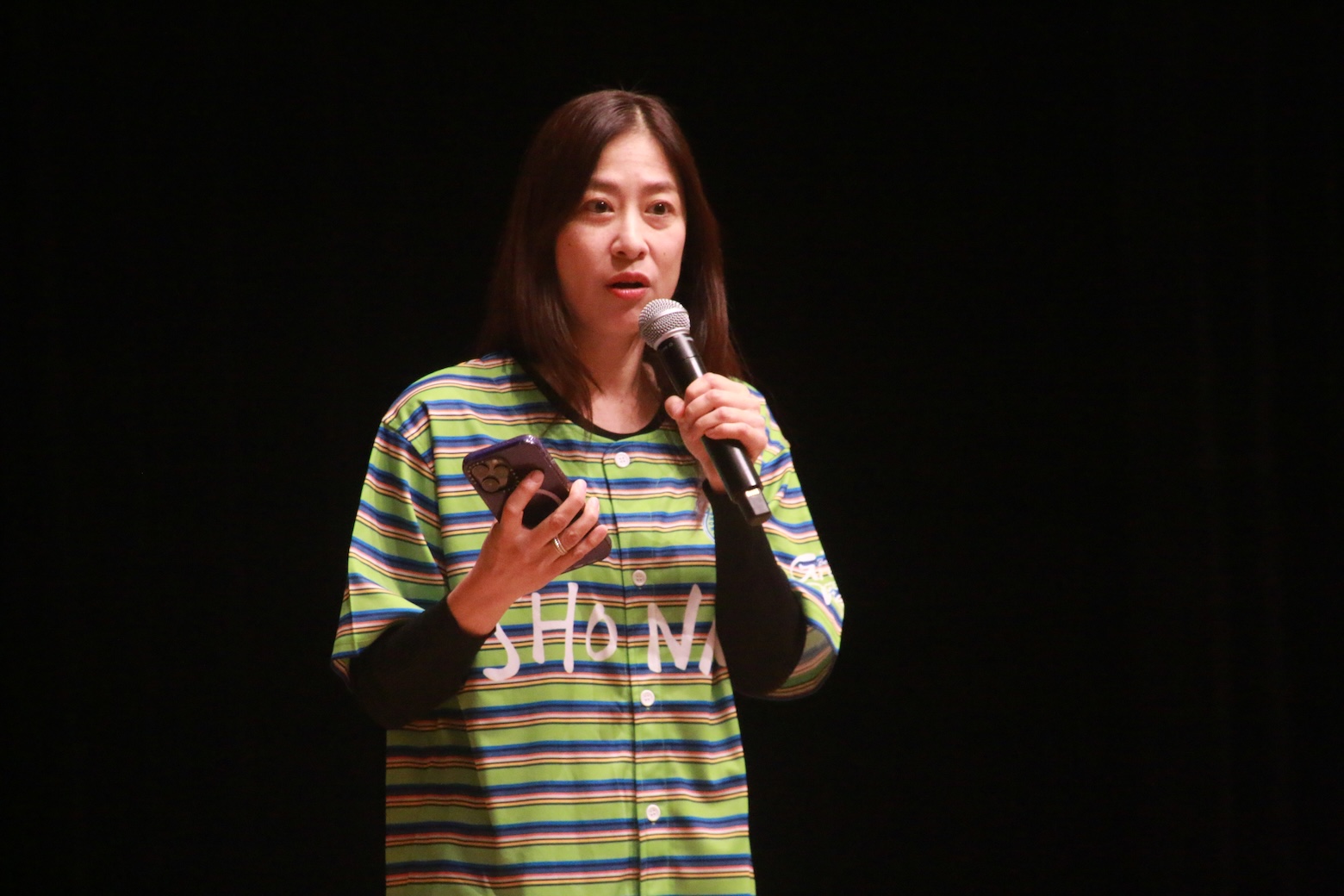楽しみながら行うマイクロプラスチック拾いを考案するなど、みんなで取り組むことが大切だと来場者に呼びかけました。