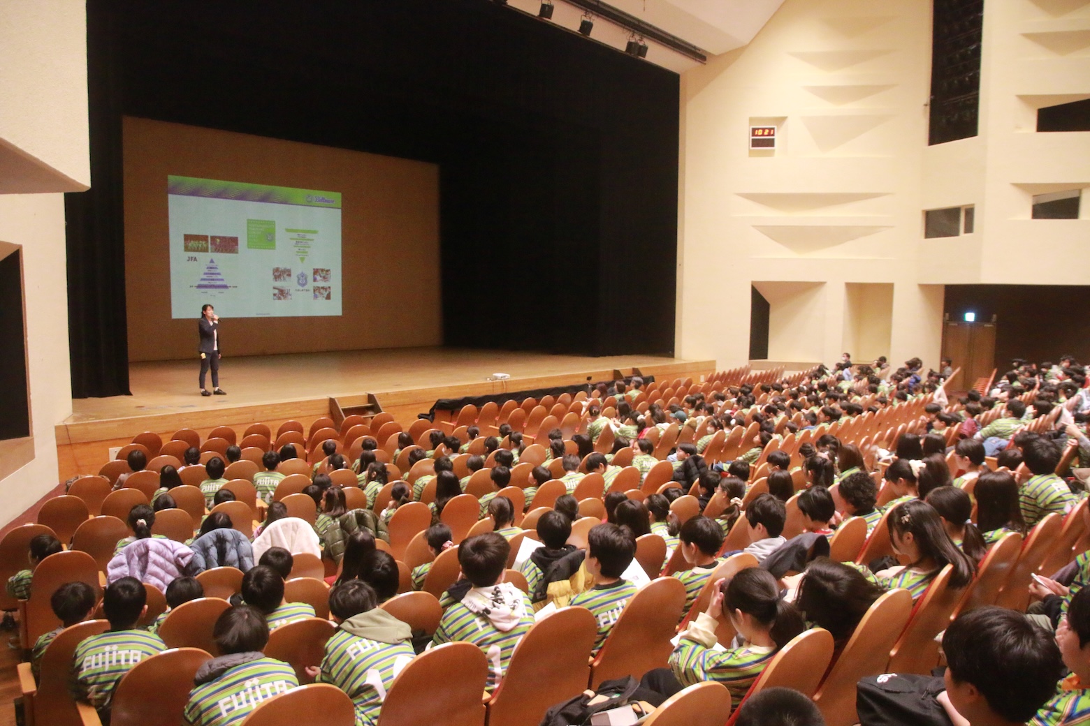 会場 茅ヶ崎市民文化会館 大ホールには参加した全児童に加え、保護者の皆さま、茅ヶ崎市長 佐藤様、教育長 青柳様をはじめとした茅ヶ崎市関係者の皆さま、そしてプロジェクトに参加いただいた湘南ベルマーレ オフィシャルクラブパートナー企業の皆さま、エシカル・リーダーの皆さまをお招きし、大盛況となりました。