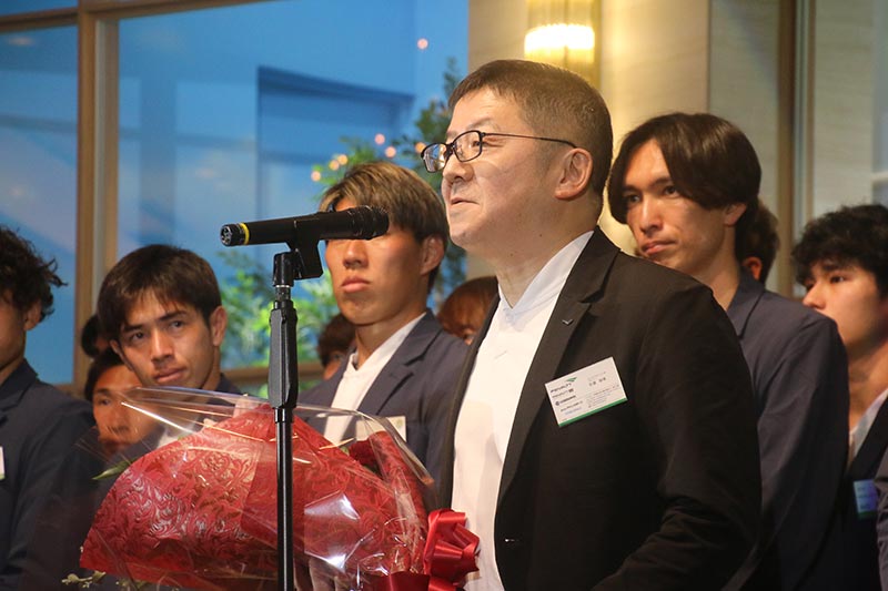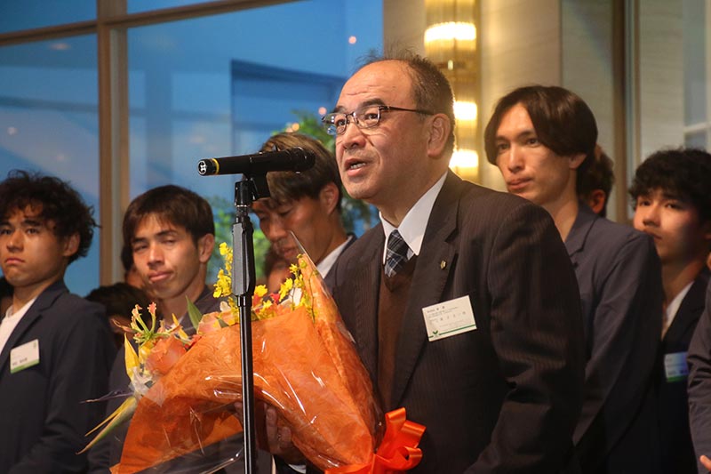 交流後、パートナー代表としてリンカングループ 代表取締役 國方 広一郎様、株式会社ウインスポーツ セールスプロモーション部マネージャー 佐藤 智博 様より一言と激励の花束を贈呈いただきました。