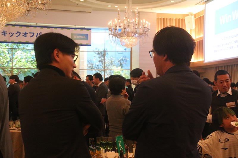 オフィシャルクラブパートナーおよびサポートコーポレーションプレミアム(ご支援いただいております法人・団体・個人の方のうち、「GOLD」「SILVER」「BRONZE」メンバー)の皆さまにご参加いただき、百年構想リーグの開幕を控え、気持ちを一つにスタートできるような会となりました。