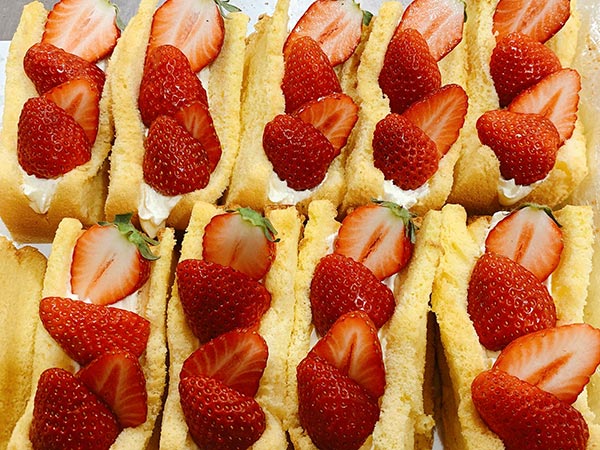 『イチゴのたき火』 当日販売価格(税込):1000円 食べやすくカットしたイチゴは存在感のある炎、ビターなちょこちっぷは薪。イチゴのたき火を囲んで温まってください。甘さひかえめな生クリームと自家製イチゴソースとの相性をぜひ楽しんで。 |