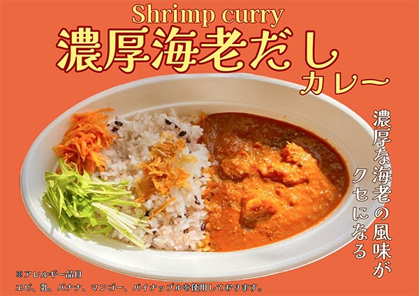 『濃厚海老だしカレー』 当日販売価格(税込):1,200円 海老好きにはたまらない、濃厚な海老の出汁が効いたリピーター続出のカレー! |