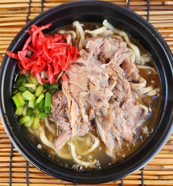 『ソーキそば大』 当日販売価格(税込): 900円 とろとろソーキが乗った優しいスープの沖縄そばです。当店イチオシメニューです! |