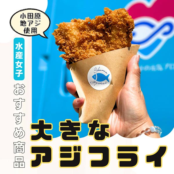 「大きなアジフライ」や「マグロカツ」「小あじのからあげ」など、小田原港直送の美味しいものを食べていただけるよう活動しています!