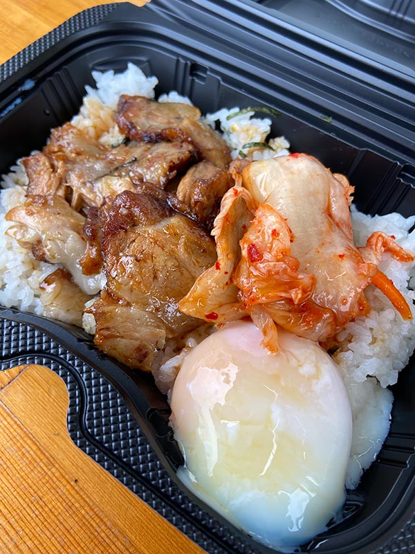 『豚トロキムチ丼』 当日販売価格(税込):1,100円 ベルマーレ限定メニュー ピリ辛キムチトッピング |