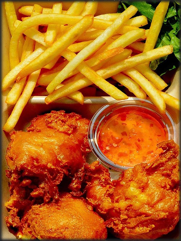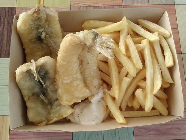 『フィッシュ&チップス』 当日販売価格(税込): 800円 地元茅ケ崎の魚とポテトを合わせてフィッシュ&チップス、とても珍しいです。 |