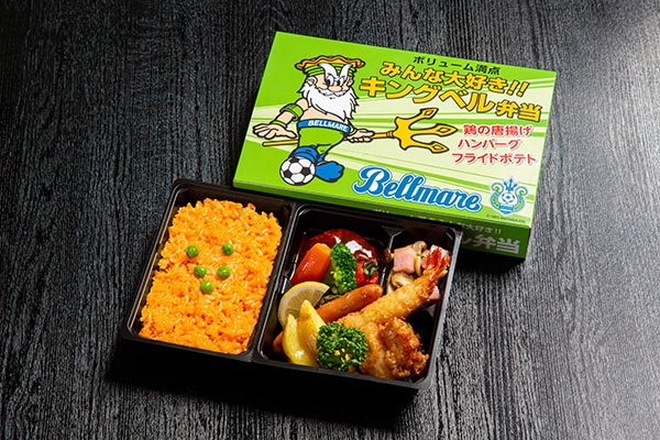 『キングベル弁当』 当日販売価格(税込):1,100円 チキンライス・ハンバーグ・エビフライ・ポテト等、みんなの大好きが詰まったお弁当。お子さまから大人までお楽しみいただけます。 |