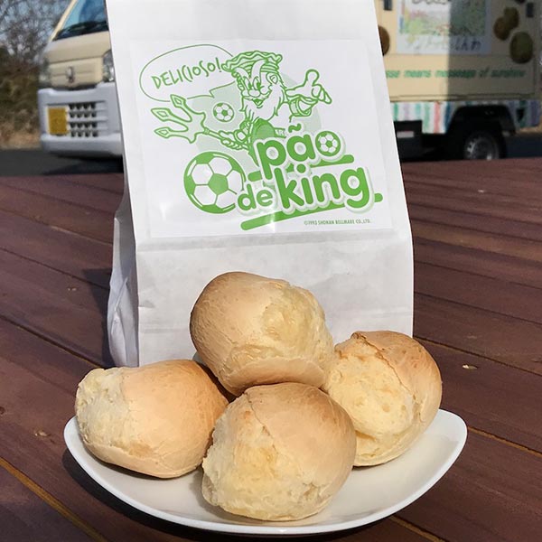 『ポン・デ・キング』 当日販売価格(税込): 650円 ブラジルの定番グルメ「ポン・デ・ケイジョ」をレシピから開発! ポン・デ・ケイジョは、表面は歯応えがあり、中はもっちり柔らかなチーズ味のおやつパン。つまみやすい形状なので、お子様のおやつとしてシェアしたり、おつまみにもピッタリです。 |