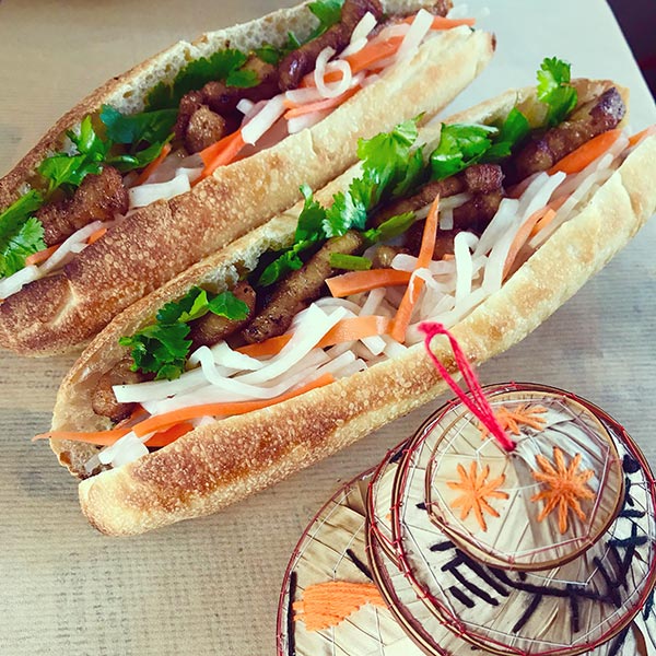 『チャウさんの焼豚バインミー』 当日販売価格(税込): 850円 当店No. 1!!チャウさん自慢のタレで漬け込んだ焼豚バインミー。 |