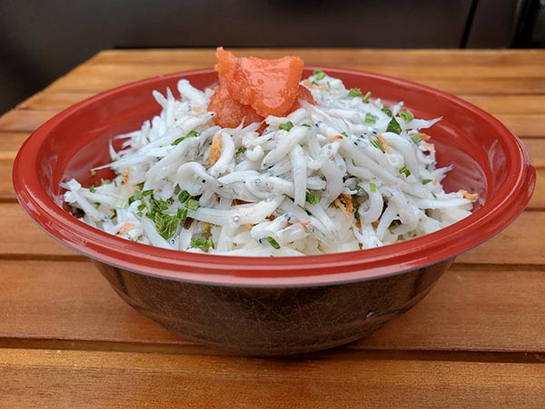 『しらす丼』 当日販売価格(税込):1,000円 しらす丼、地元茅ケ崎で、水揚げされた釜あげしらすです。 |