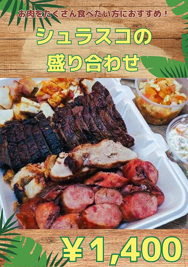 『シュラスコの盛り合わせ』 当日販売価格(税込):1,400円 シュラスコ丼と同じお肉の盛り合わせです。ヴィナグレッチソースもつきます! |