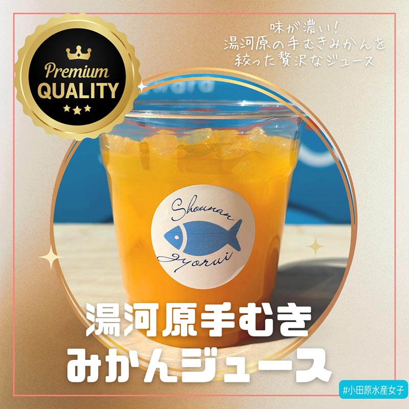 『湯河原手むきみかんジュース』 当日販売価格(税込):600円 味が濃い! 湯河原の手むきみかんを絞った贅沢なジュース |