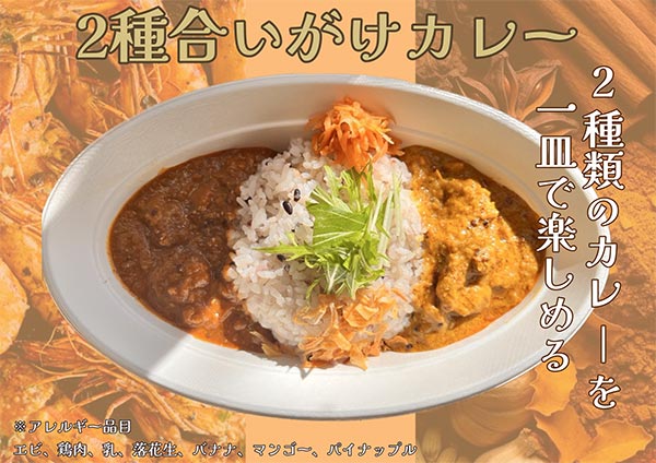 『2種合いがけカレー』 当日販売価格(税込):1,400円 濃厚海老だしカレーと本格バターチキンカレーを一度に食べられる贅沢な一品! |