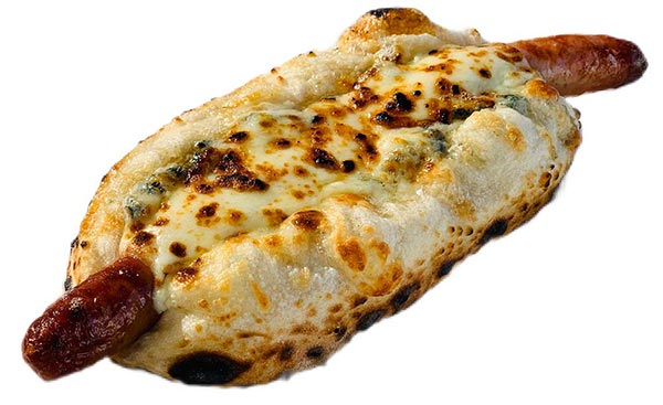 『ナポリピッツァドッグ ゴルゴンゾーラ』 当日販売価格(税込):1,100円 シェフ厳選4種のチーズに旨味たっぷりソーセージ!お好みではちみつをどうぞ♪ |