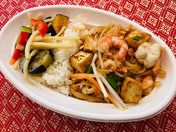 『2種盛り(パッタイ焼きそば・ガパオライス)』 当日販売価格(税込):1,200円 当店人気メニューのパッタイ焼きそばとガパオライスが2種盛りになって登場! |