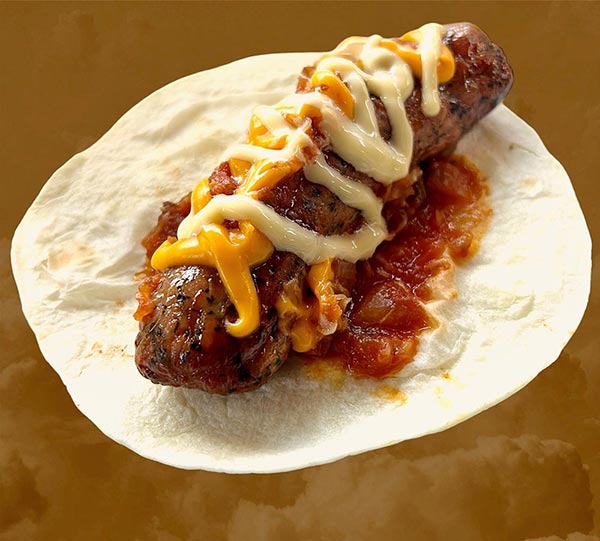 『スモークチェダーチョリソータコス』 当日販売価格(税込):1,000円 チョリソータコスにスモークチーズ、チェダーチーズをトッピング!ぜひご賞味ください! |