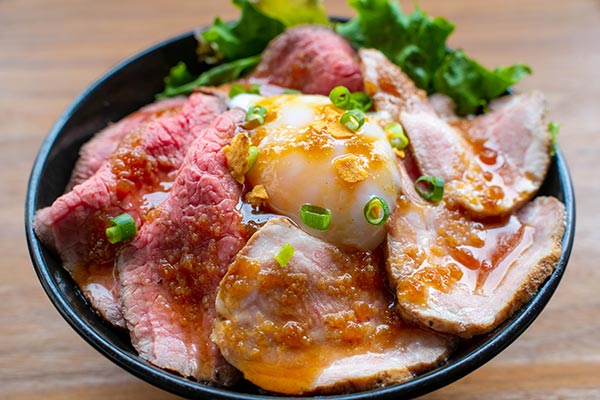 『"極み”ローストビーフ&ローストポークの合い盛り丼』 当日販売価格(税込):1,300円 |