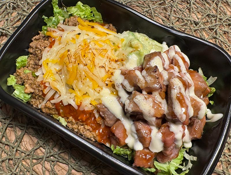 冬場に大人気のタコライスに、ガリバタBBQソースで味付けした角切りのローストビーフをたっぷりとのせたBIG BELLMALE DAY限定の肉肉メニューです! 過去にないくらいの肉肉しいメニューとなっておりますので、ぜひお召し上がりください!!(※もちろんフタは閉まりません)