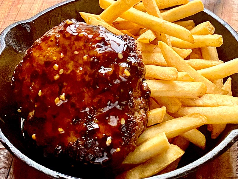100%国産牛、やみつきスパイス、こだわり抜いた唯一無二のBULL’Sフラッグシップメニュー。 『武骨ハンバーグステーキ』