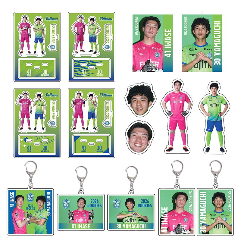 背番号チャームが揺れる選手名をデザインしたキーホルダーと、選手を全身デザインした集めたくなるミニアクリルブロックをラインナップ。