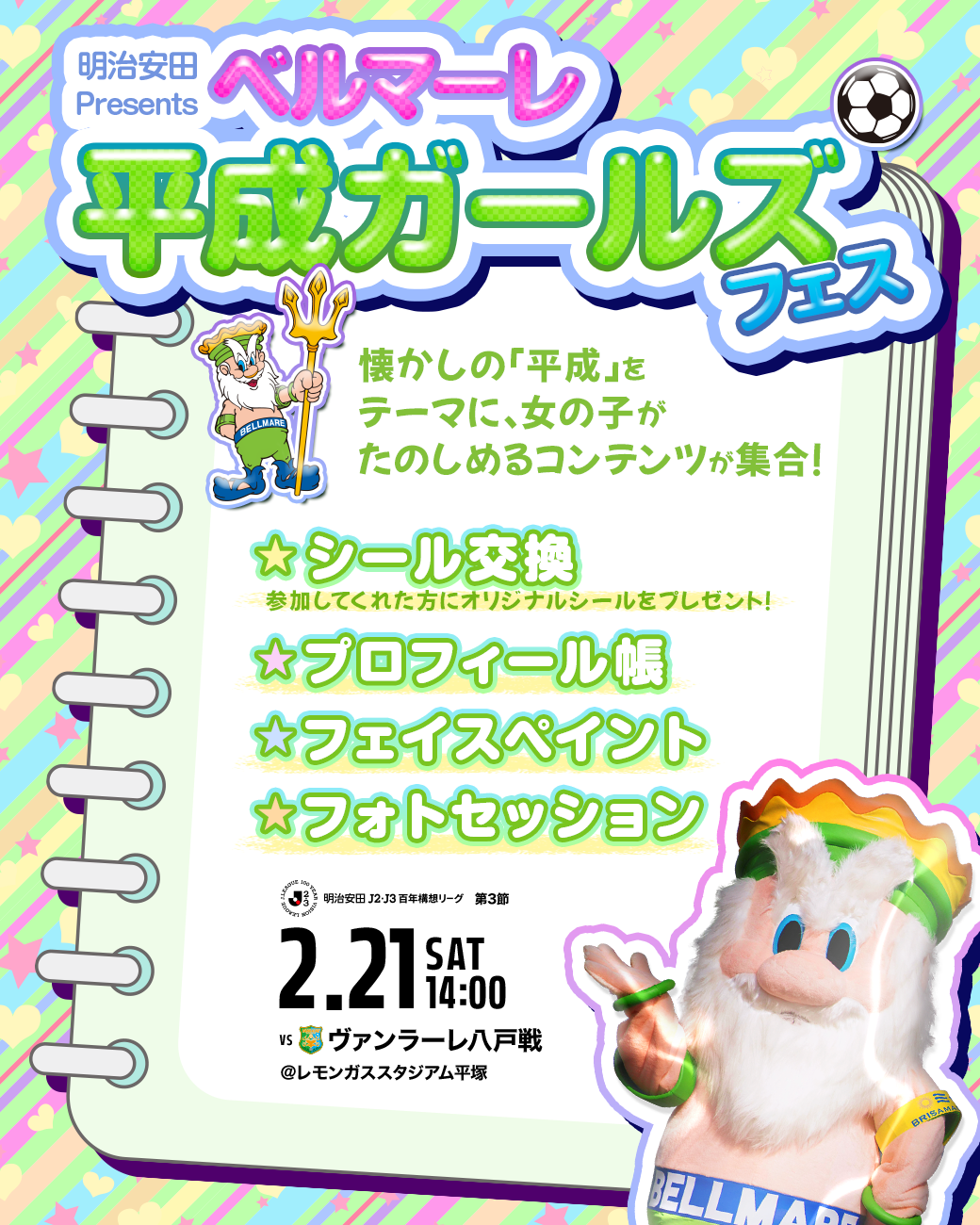 2月21日(土)ヴァンラーレ八戸戦を「明治安田 Presents ベルマーレ平成ガールズフェス」として開催することが決定しました!