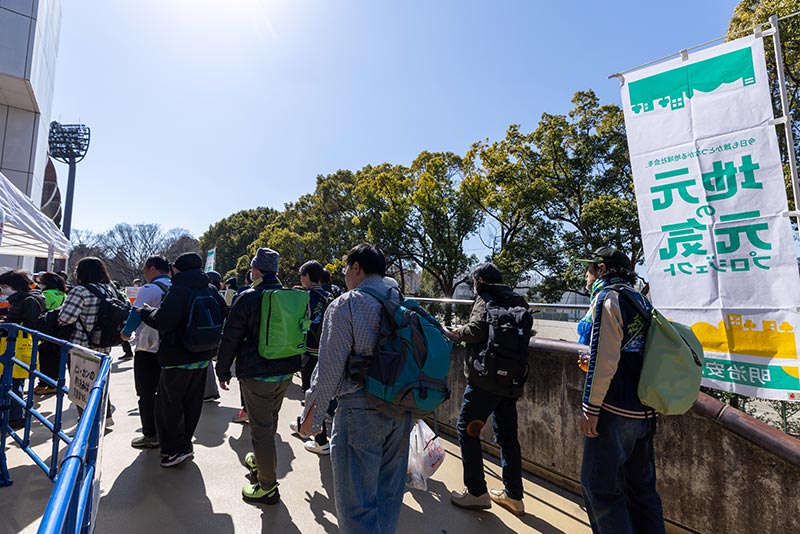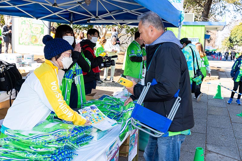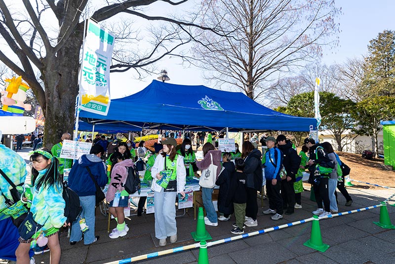 アンケートにご回答いただいた方から抽選で1,000名様へ「明治安田のJ活ベースボールシャツ」を配布しました。ブース開始前より多くの方にご参加いただき、ベースボールシャツを受け取ったその場で着用していただく方が大勢おられました。