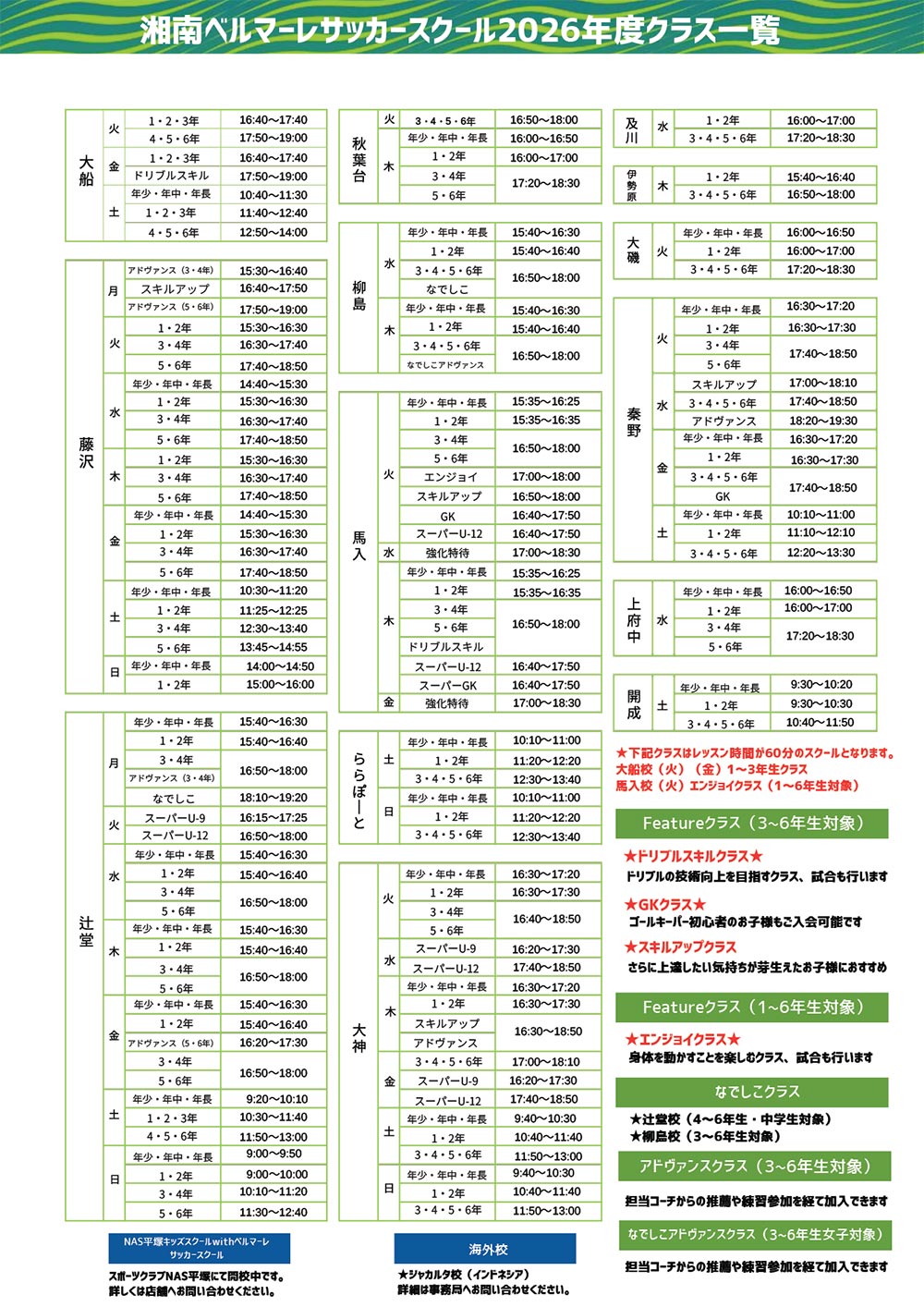 スポーツクラブNAS平塚は、提携スクール(フットサル・英語でサッカー)となります。湘南ベルマーレサッカースクールの振替やクラス移動の対象ではございません。ご入会のお問い合わせはスポーツクラブNASへお願いいたします。