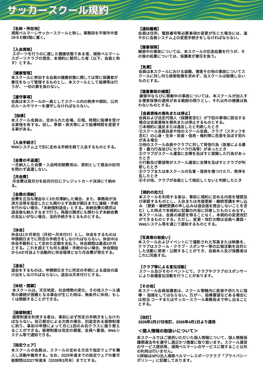 2026年度サッカースクール規約