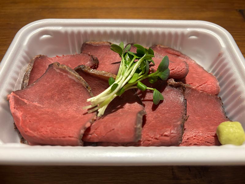 『しらすとビーフのランチボックス』 ベルマーレフードパーク・アワードで5年連続No.1に選ばれ殿堂入りとなりました!スタグル全体のメニュー部門でも1位に選んだいただいた当店1番人気の湘南名物の釜揚げしらすと自家製ローストビーフが一度に楽しめる商品です。 当日販売価格(税込):1,100円 |
