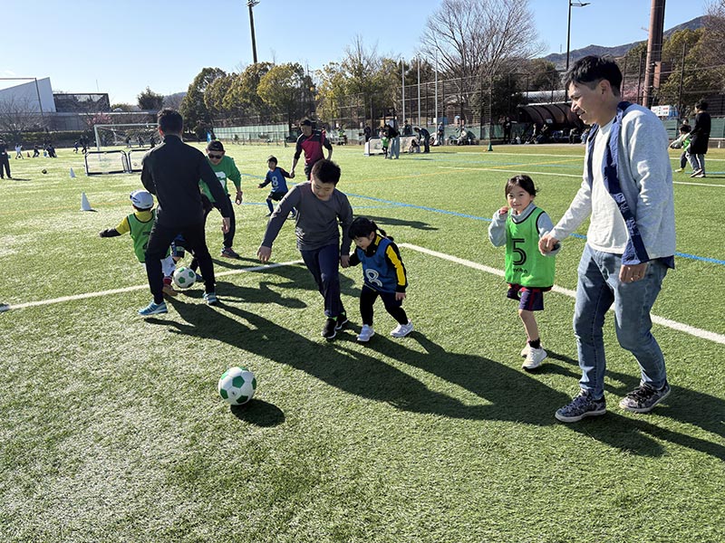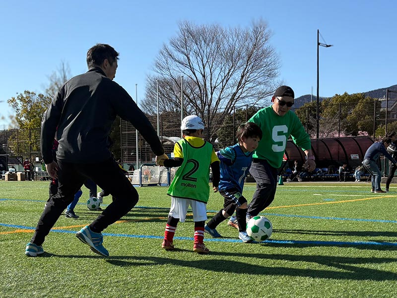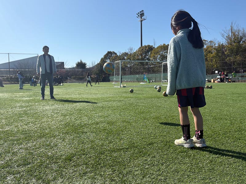 参加者の皆さまには、体を動かしながらサッカーやスポーツの楽しさを体験していただきました。