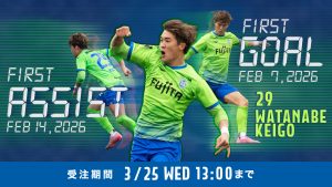 3月18日(水)18:00より、湘南ベルマーレ公式オンラインストア限定で渡邊啓吾選手の「公式戦初得点&公式戦初アシスト記念グッズ」などの新商品を発売いたします。