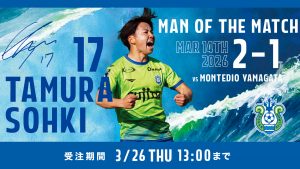 3月14日(土)モンテディオ山形戦「田村蒼生選手 マン・オブ・ザ・マッチグッズ」受注販売開始!