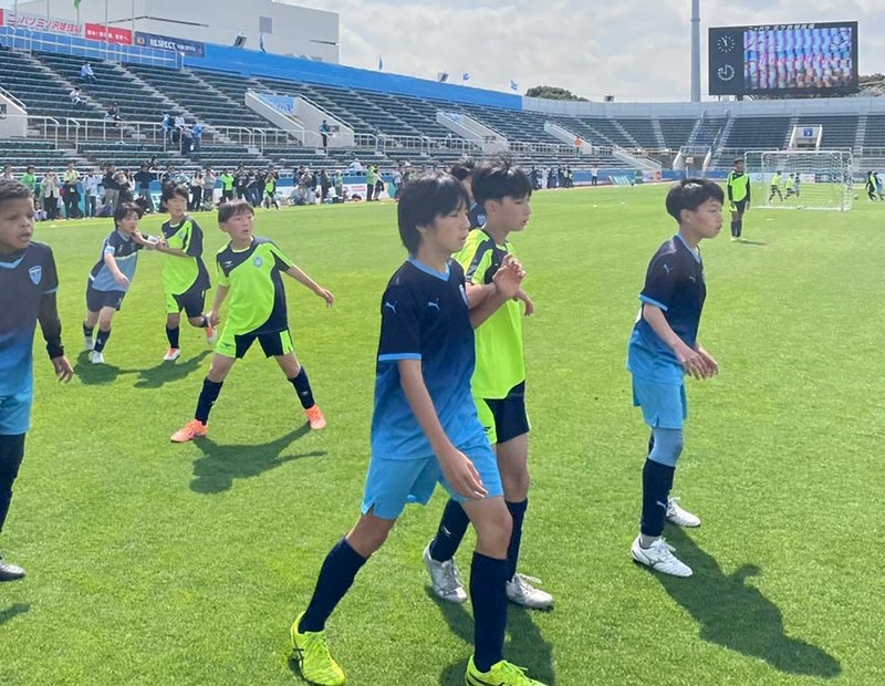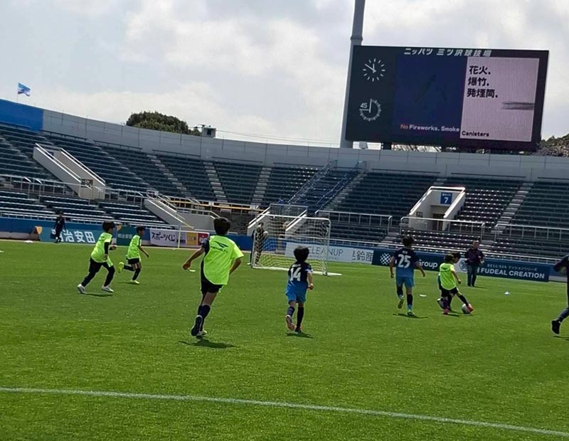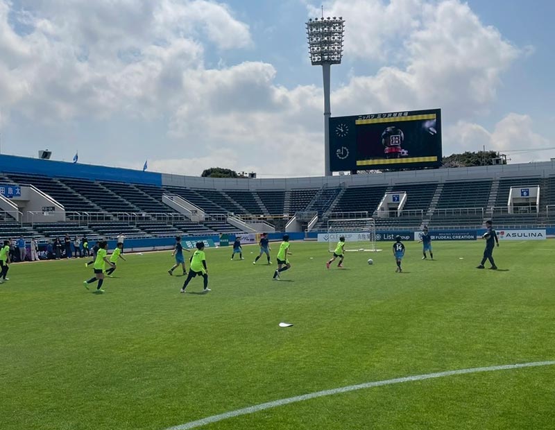 3月28日(土)ニッパツ三ツ沢球技場にて、横浜FC戦の前座試合として、両クラブのサッカースクール生による交流戦を実施いたしました。