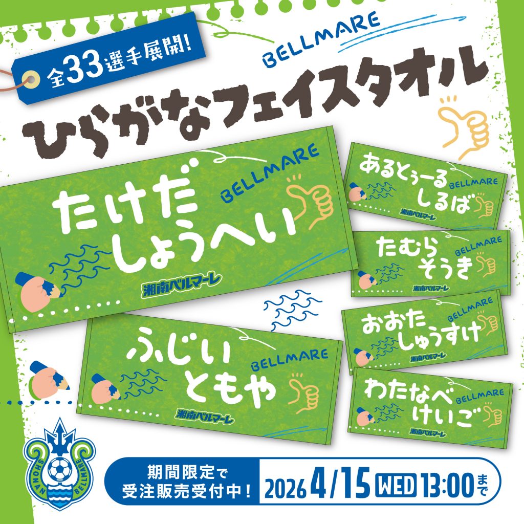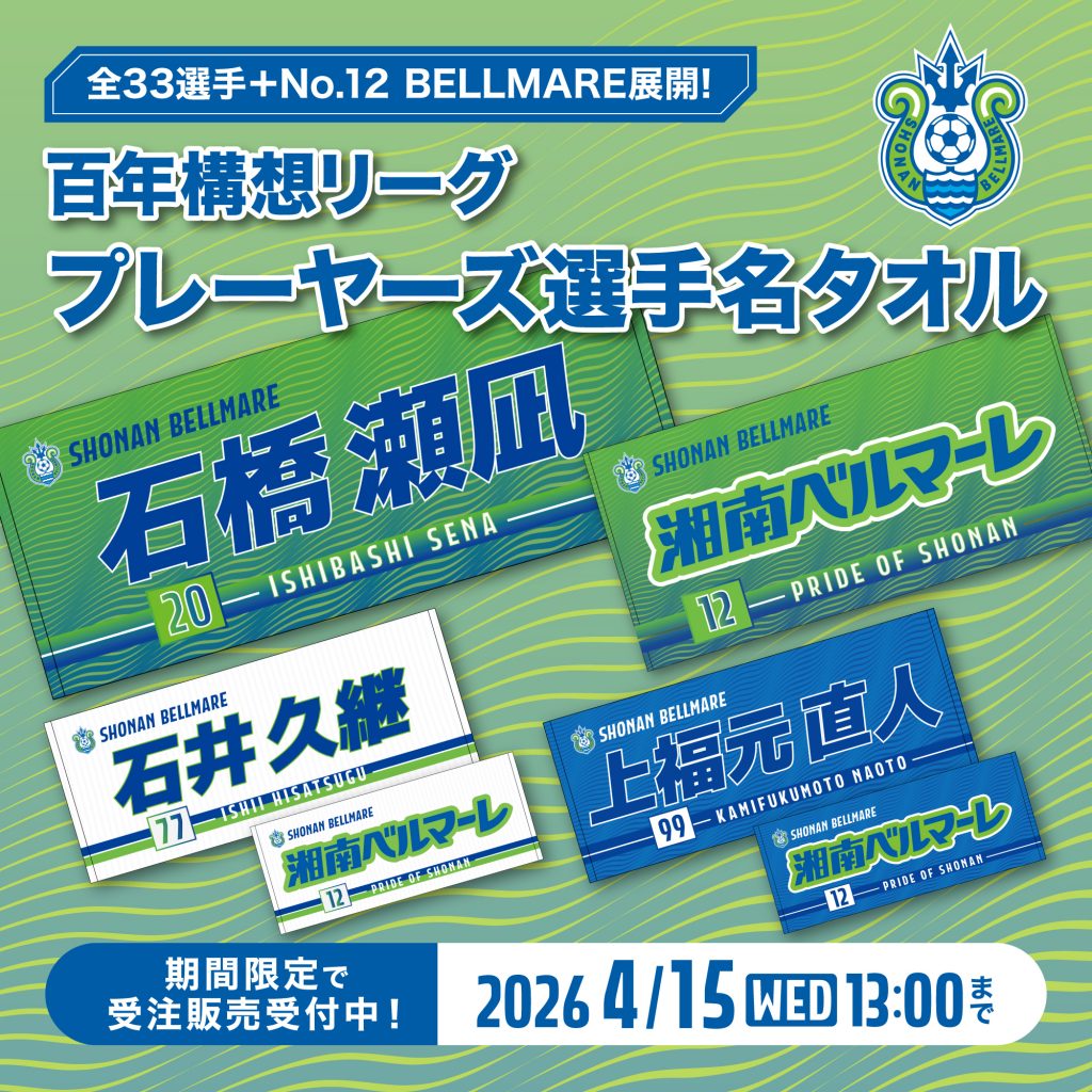 4月8日(水)18:00より、湘南ベルマーレ公式オンラインストア限定で「選手名タオル」の受注販売を開始いたします。