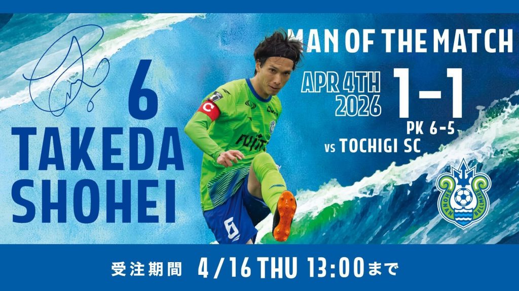 4月4日(土)栃木SC戦「武田将平選手 マン・オブ・ザ・マッチ グッズ」受注販売開始!