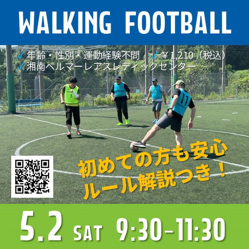 5月2日(土)に湘南ベルマーレアスレティックセンターフットサルコートで、全年齢対象「ウォーキングフットボール」を開催いたします。