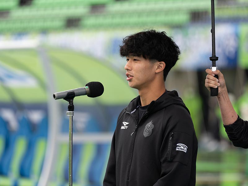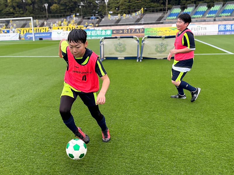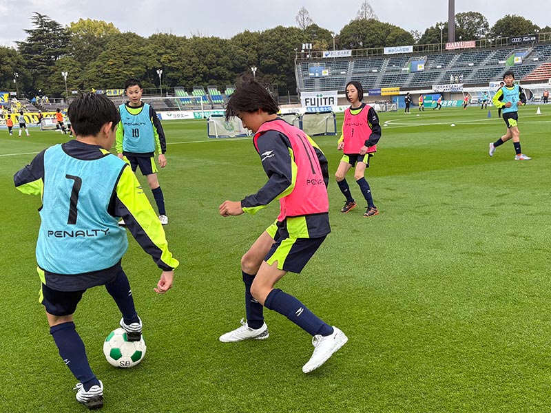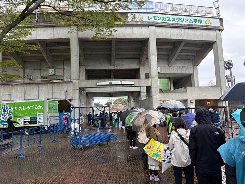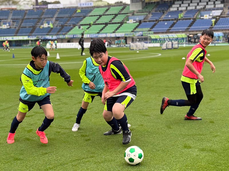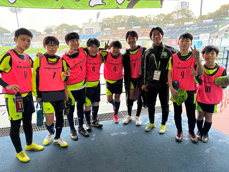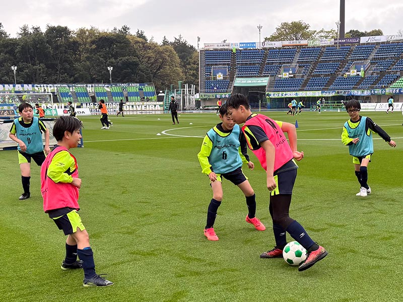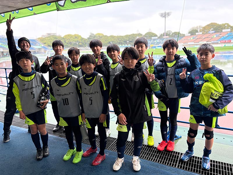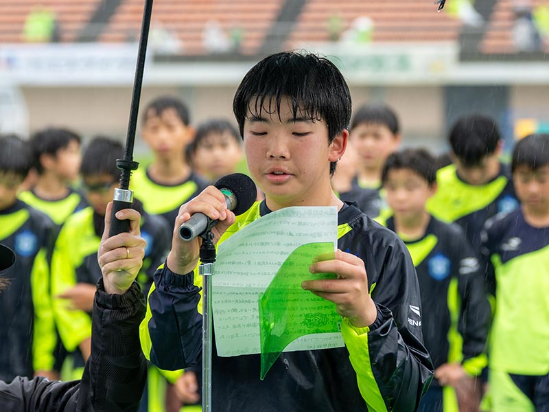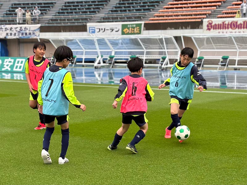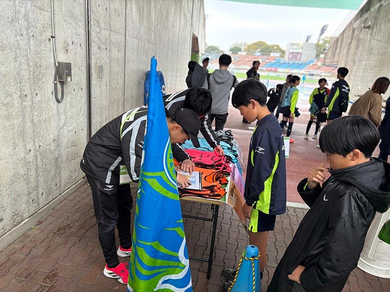 当日はあいにくの雨模様となりましたが、スクール生たちは元気にスタジアムへ集合。