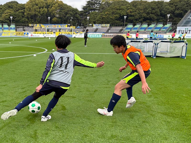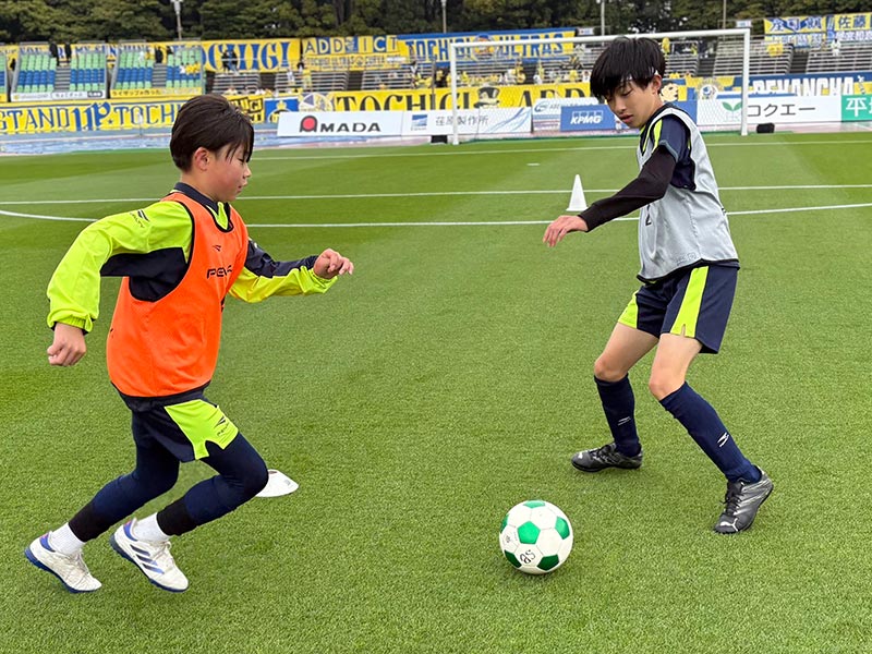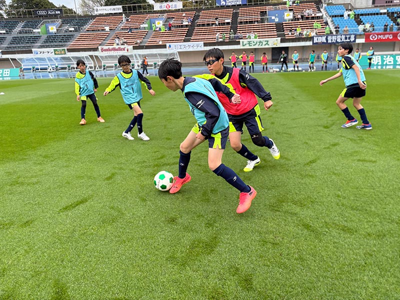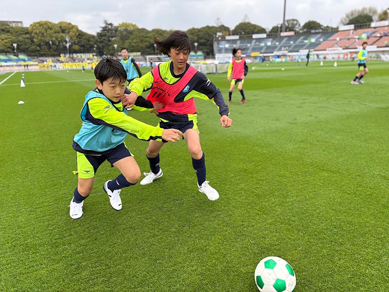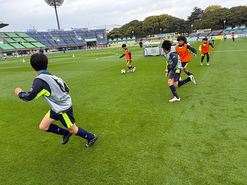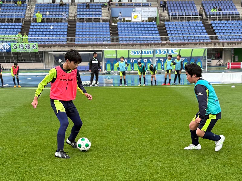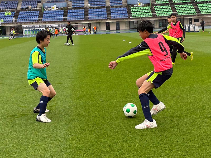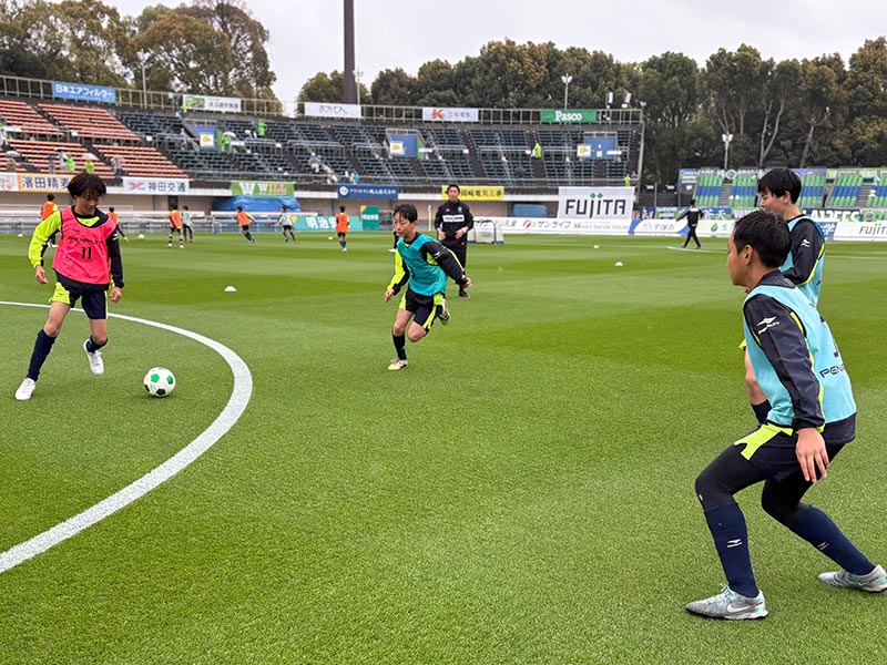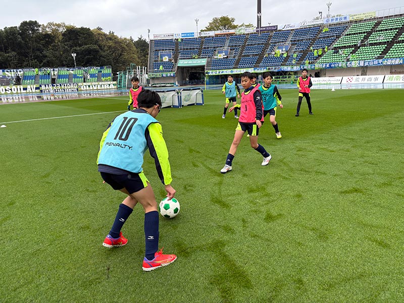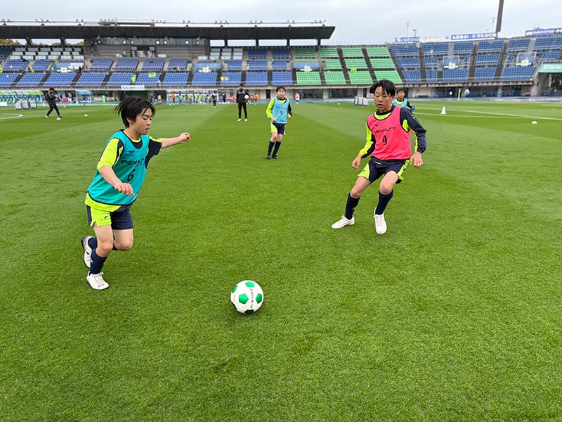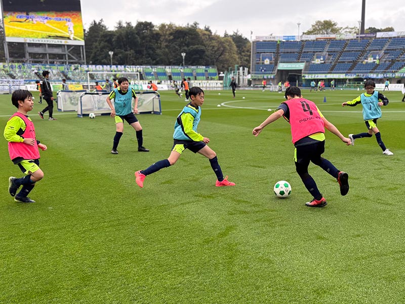 卒業式後には、トップチームのウォーミングアップをピッチ横で見学。プロ選手のプレーを間近で体感する貴重な機会となり、スクール生たちはそのスピードや迫力に目を輝かせていました。