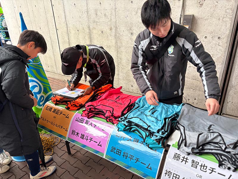 受付後、それぞれのチームに分かれて待機し、エキシビジョンマッチに向けてウォーミングアップを行いました。