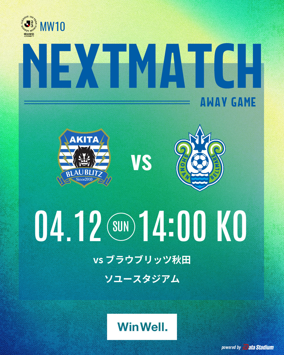 4月12日(日)に開催される明治安田J2・J3百年構想リーグ地域リーグラウンド第10節ブラウブリッツ秋田戦の試合情報をお知らせいたします。