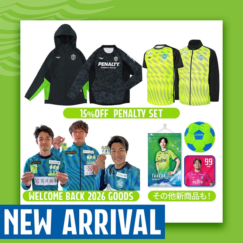 お得な「PENALTYアパレルセット」をはじめ、期限付き移籍から復帰した3選手の記念グッズなど、注目のアイテムが目白押しです。