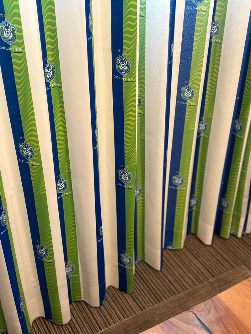 新商品グッズ③ 湘南ベルマーレオリジナルカーテン&シェード、クッションカバー
