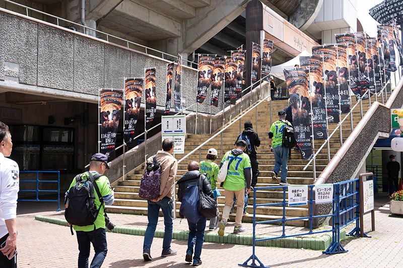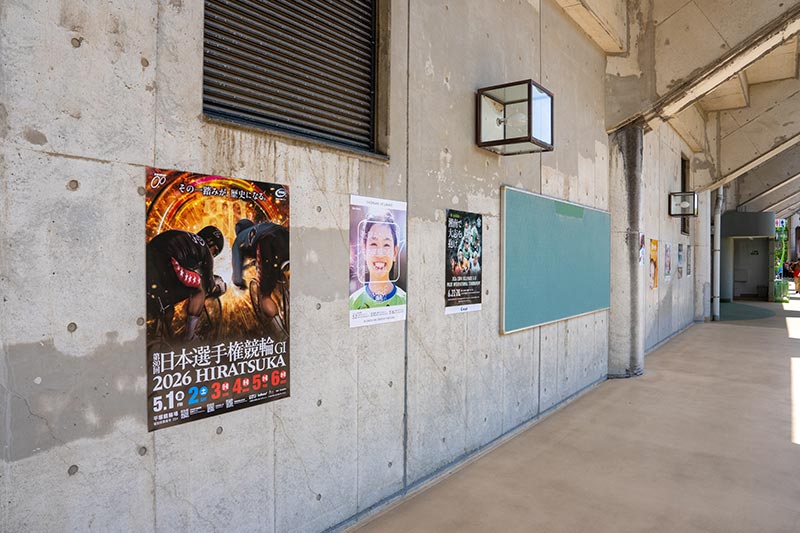 スタジアムコンコースへポスターを掲出、入場ゲートは平塚競輪のぼり旗で装飾され会場を彩りました。