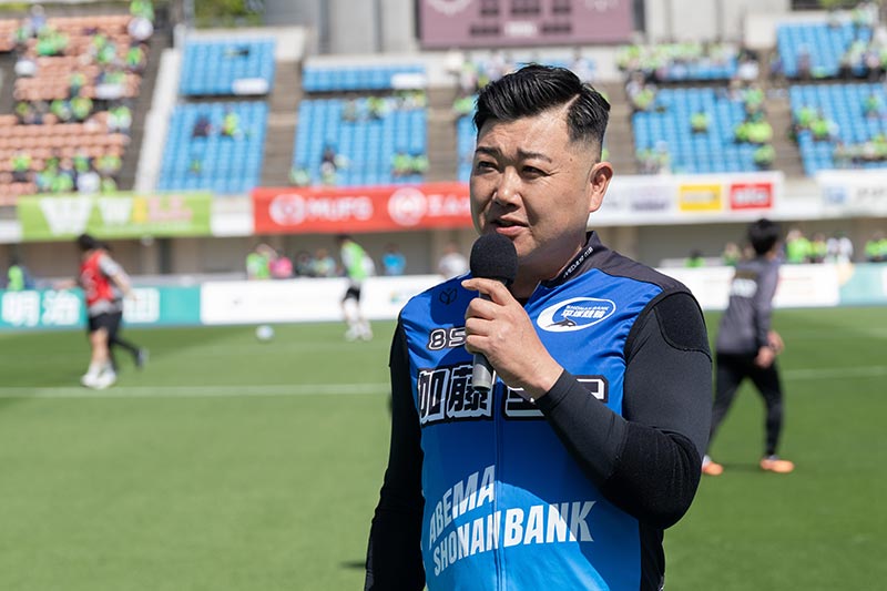 キックオフ前にはスペシャルデーゲストトークとして、平塚競輪場所属の加藤圭一選手より、熱いエールをいただきました。